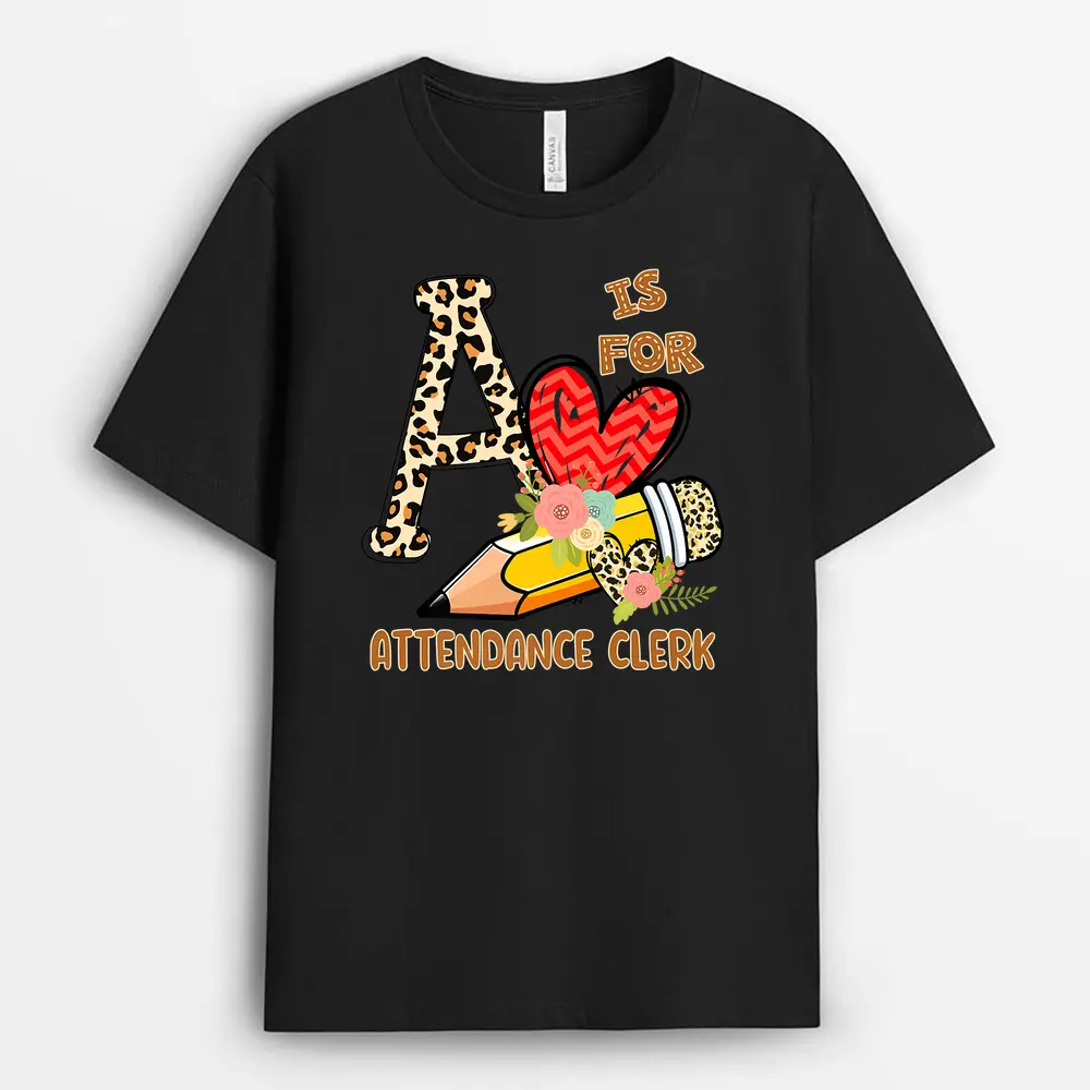 1st Day Of School Attendance Clerk Leopard Flowers Teacher T-Shirt – Black