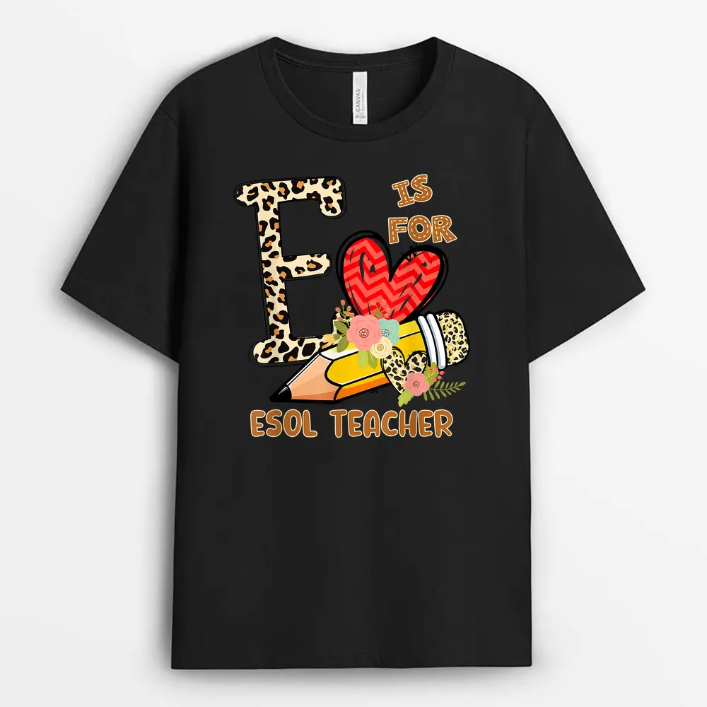 1st Day Of School Esol Teacher Leopard Flowers Teacher T-Shirt – Black
