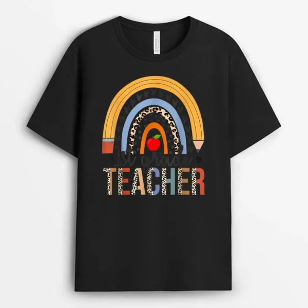 1st Grade Teacher Leopards Rainbow First Day Of School Funny T-Shirt – Black