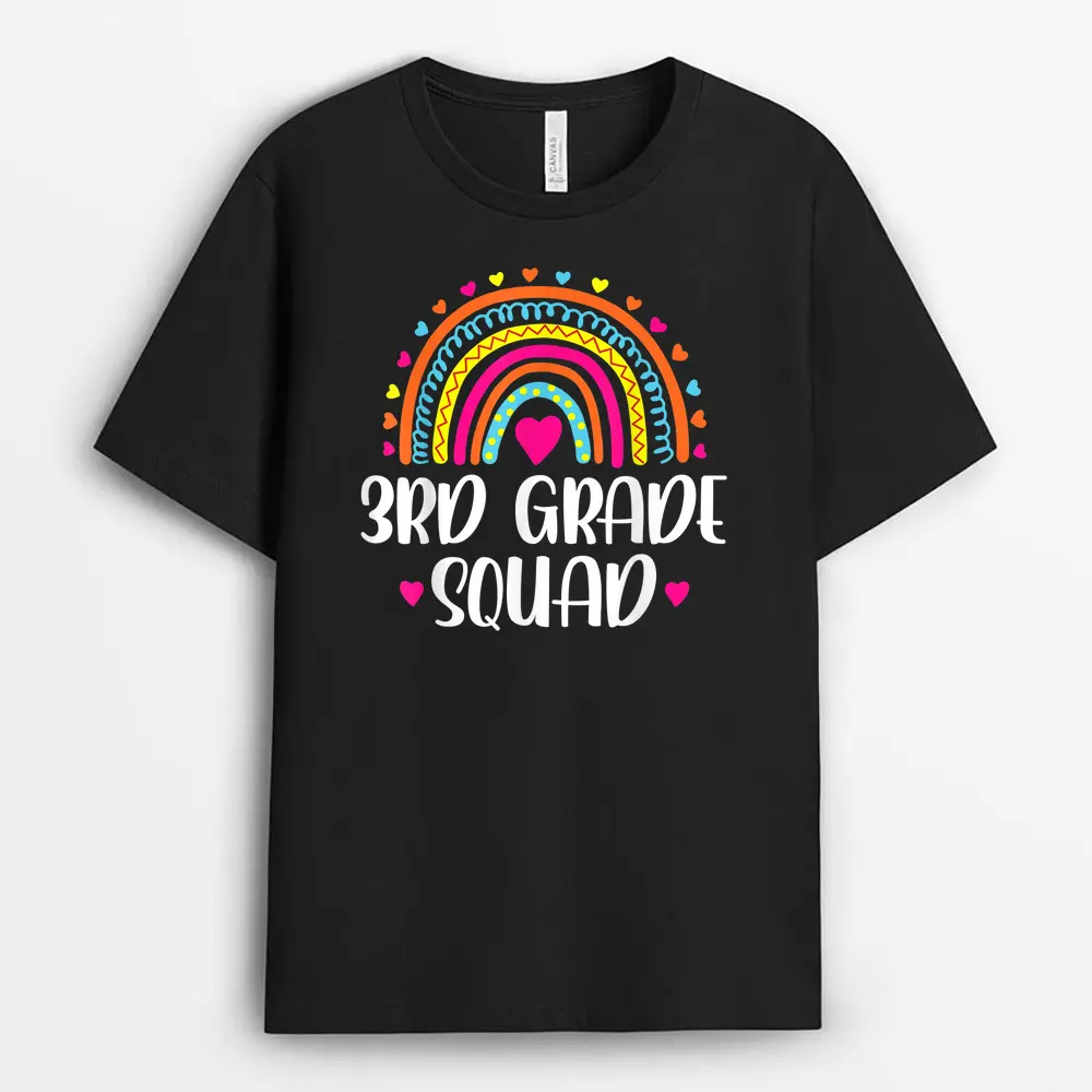 3rd Grade Squad Rainbow Back To School Teacher Womens Kids T-Shirt – Black
