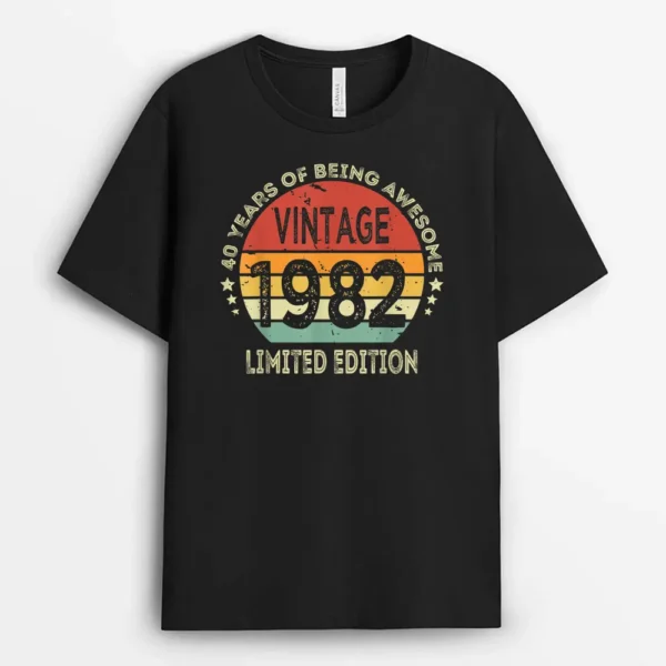 40 Year Old Gifts Vintage 1982 Limited Edition 40th Birthday T-Shirt – Black