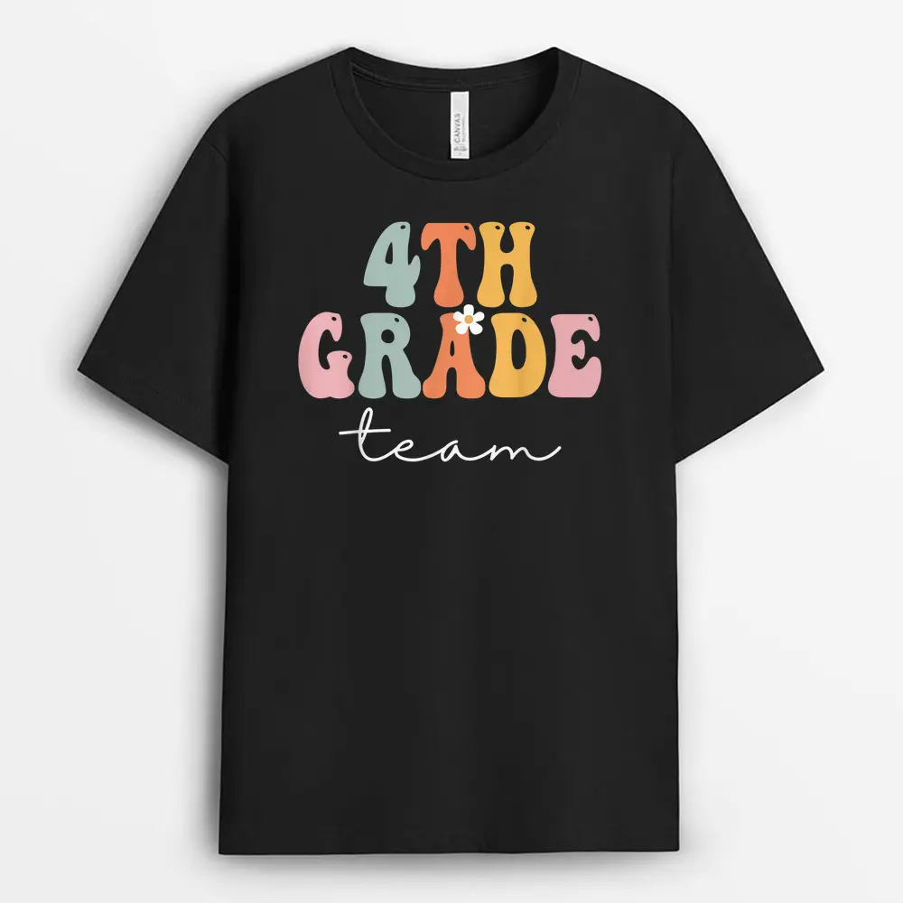 4th Grade Team Retro Groovy Women Happy First Day Of School T-Shirt – Black