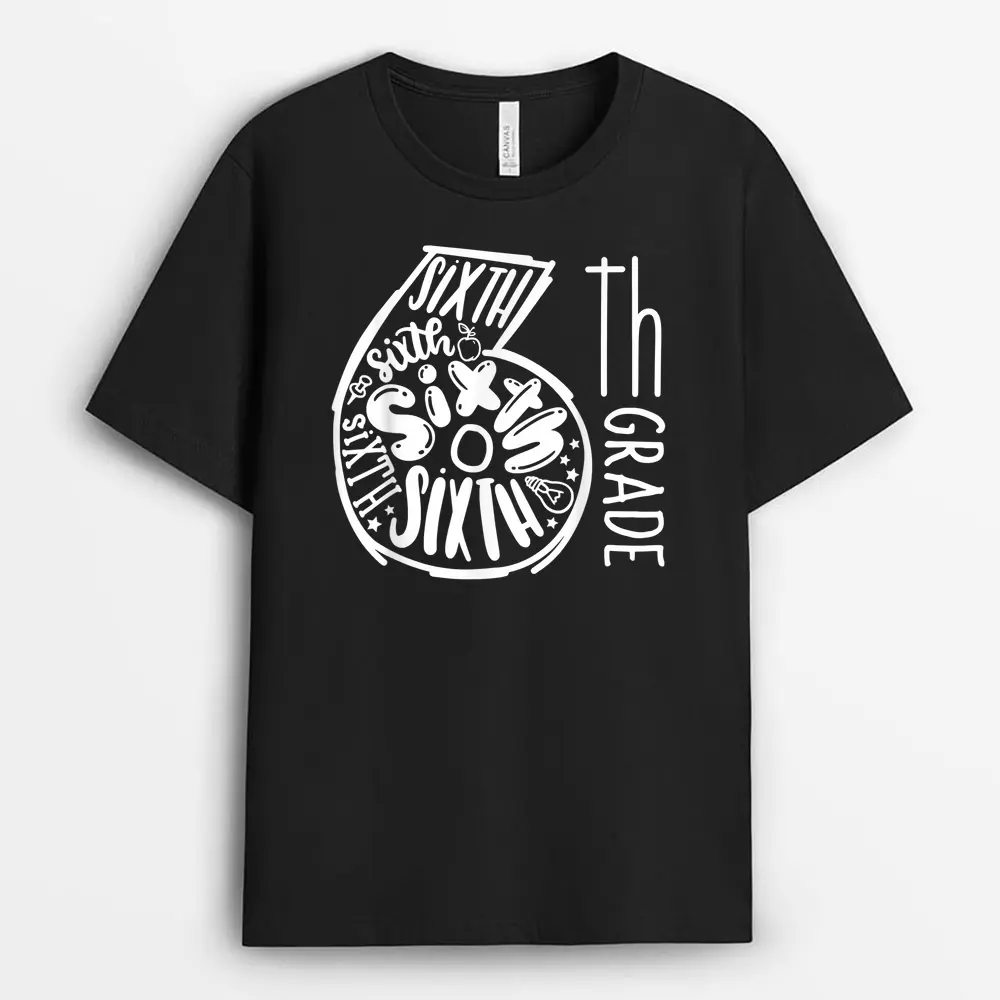 6th Grade Hello Sixth Grade Back To School Teacher Gifts T-Shirt – Black