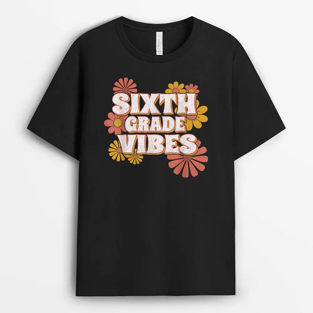 6th Sixth Grade Vibes Back To School For Teacher Student T-Shirt – Black