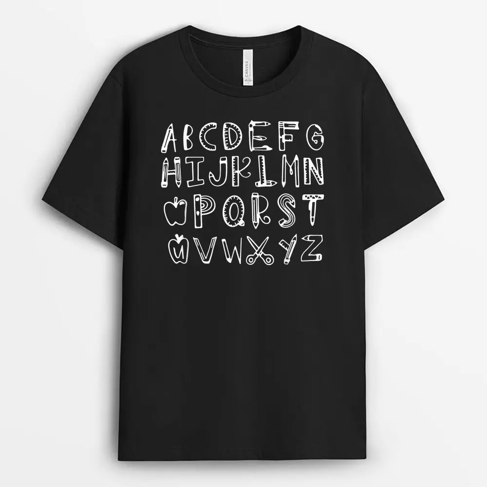 Alphabet Doodle Teacher Preschool Kindergarten Teacher Kids T-Shirt – Black