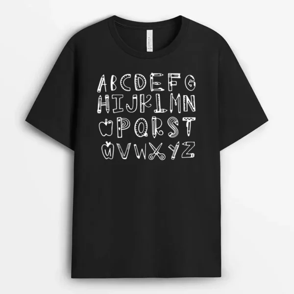 Alphabet Doodle Teacher Preschool Kindergarten Teacher Kids T-Shirt – Black
