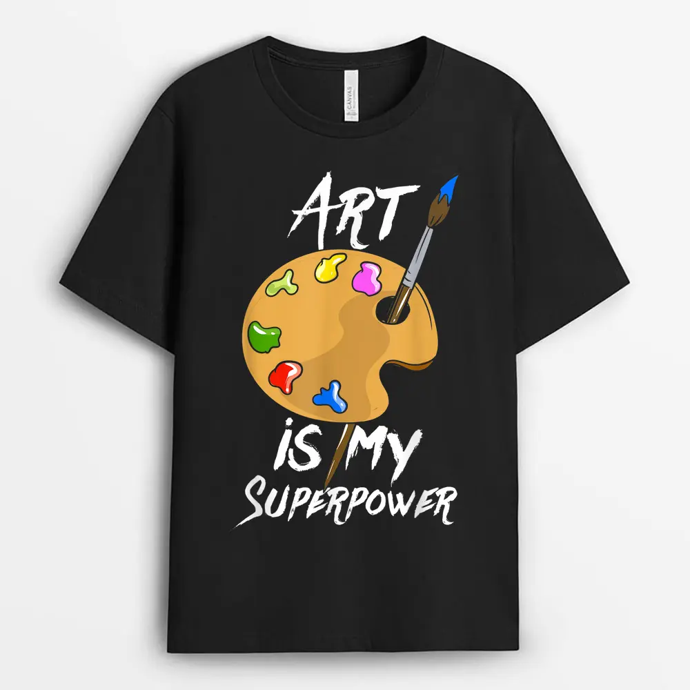 Art Is My Superpower – Drawing Funny Art Teacher Artists T-Shirt – Black