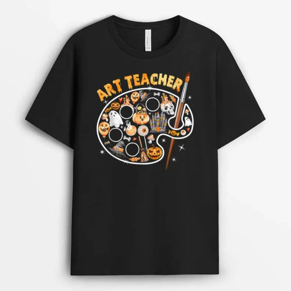 Art Teacher Spooky Pumpkin Halloween Men Women T-Shirt – Black