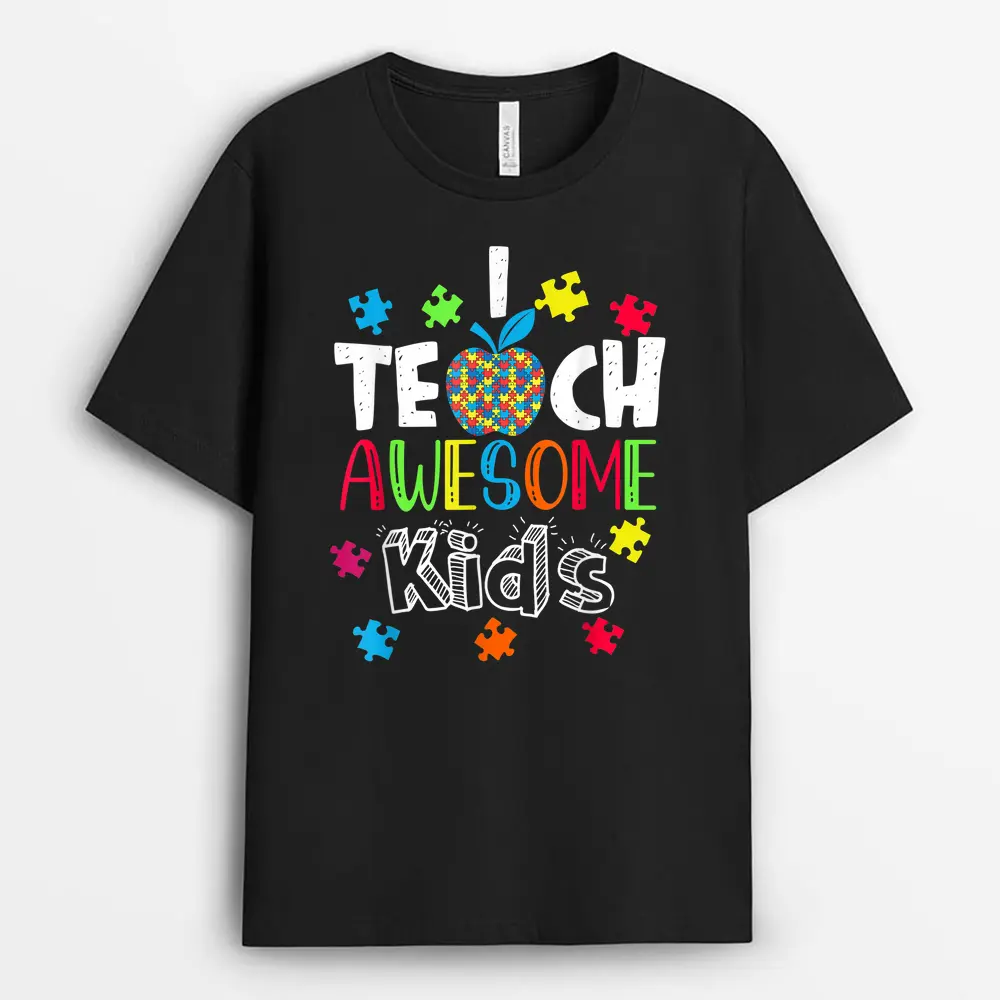 Autism Awareness I Teach Awesome Kids Special Ed Teacher T-Shirt – Black