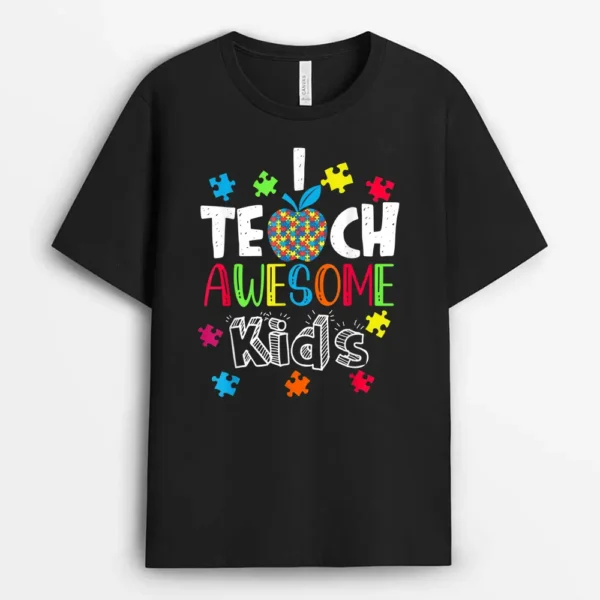 Autism Awareness I Teach Awesome Kids Special Ed Teacher T-Shirt – Black