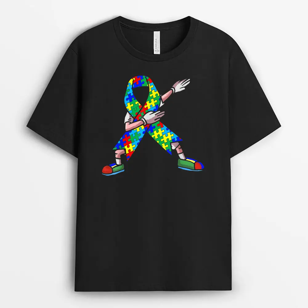 Autism Awareness Kids Dabbing Puzzle Piece Love Dab Dance T-Shirt – Black