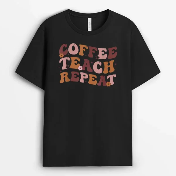 Back To School Coffee Teach Repeat Teacher Life Motivational T-Shirt – Black
