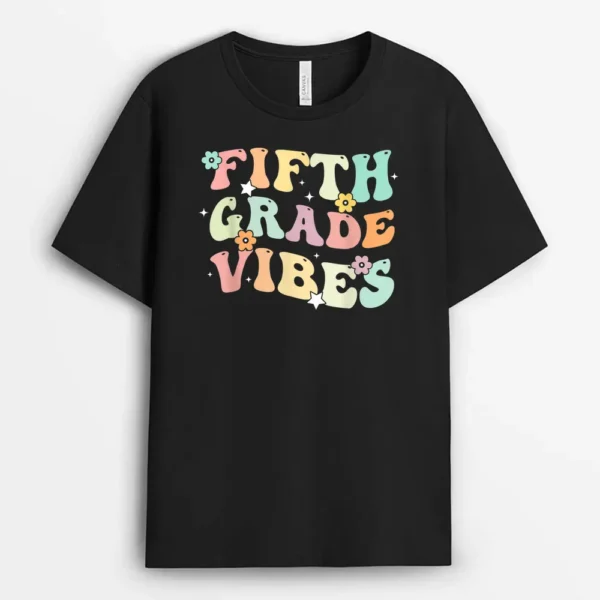 Back To School Fifth Grade Vibes Retro Student Teacher T-Shirt – Black