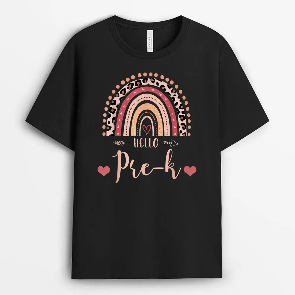 Back To School Hello PreK Teacher Leopard Rainbow T-Shirt – Black
