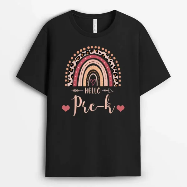 Back To School Hello PreK Teacher Leopard Rainbow T-Shirt – Black