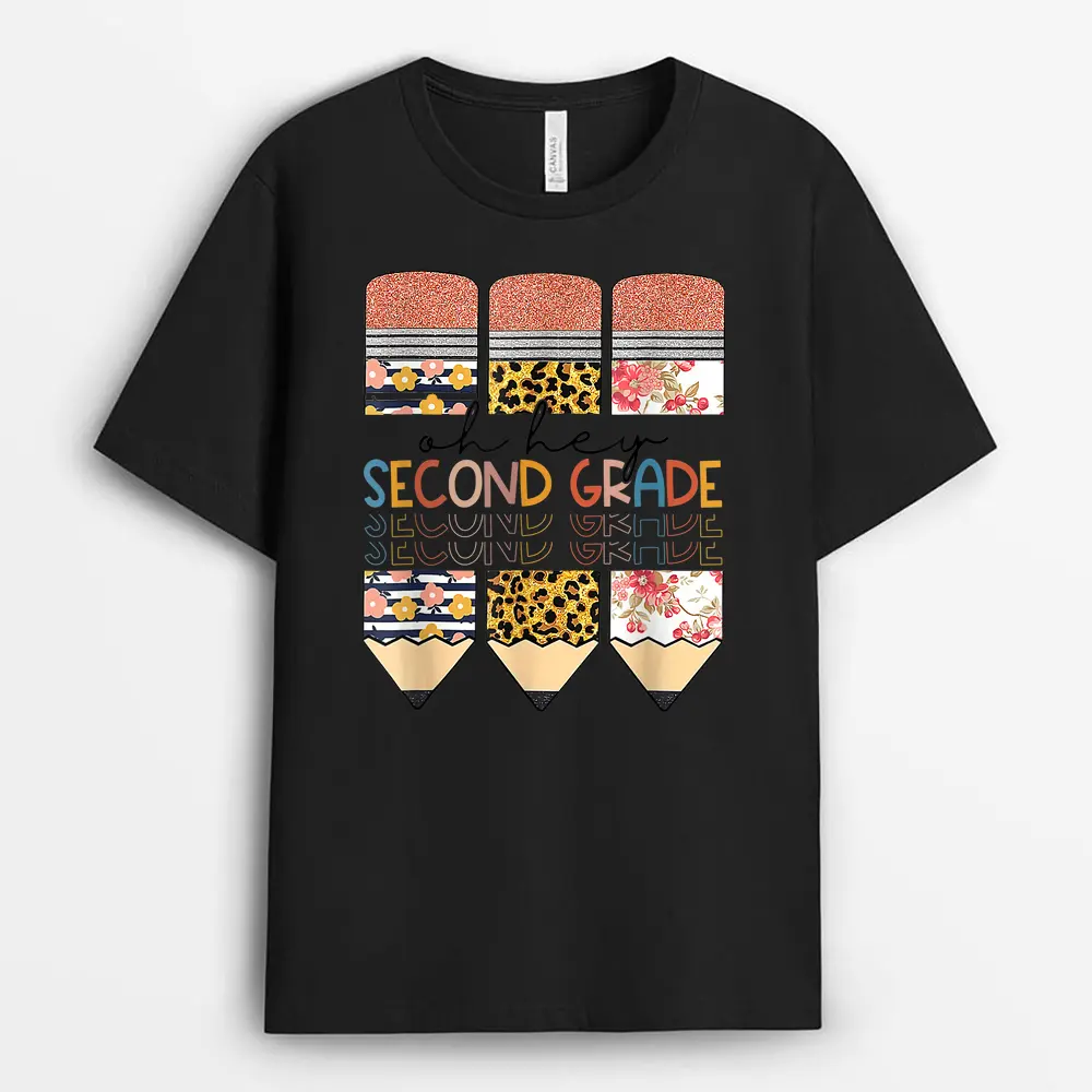 Back To School Oh Hey Second Grade Student Teacher Colourful T-Shirt – Black