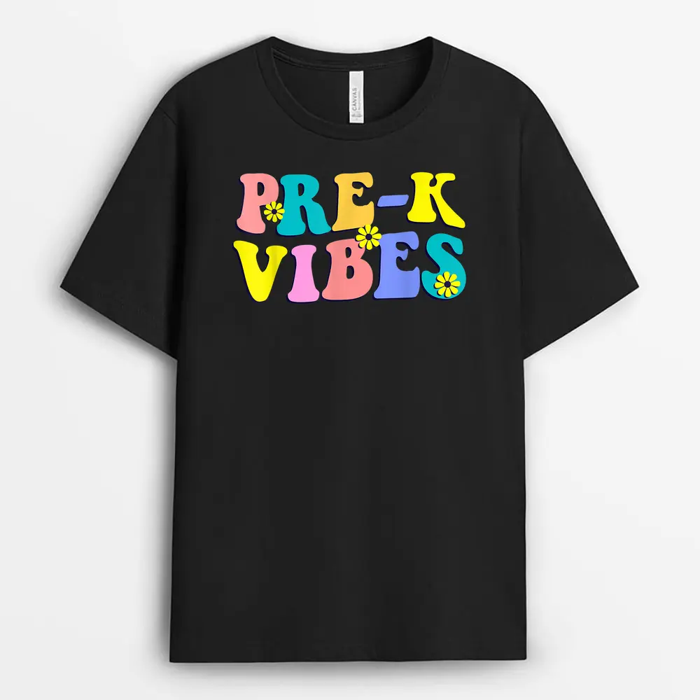Back To School Pre-K Vibes Student Teacher Retro First Day T-Shirt – Black