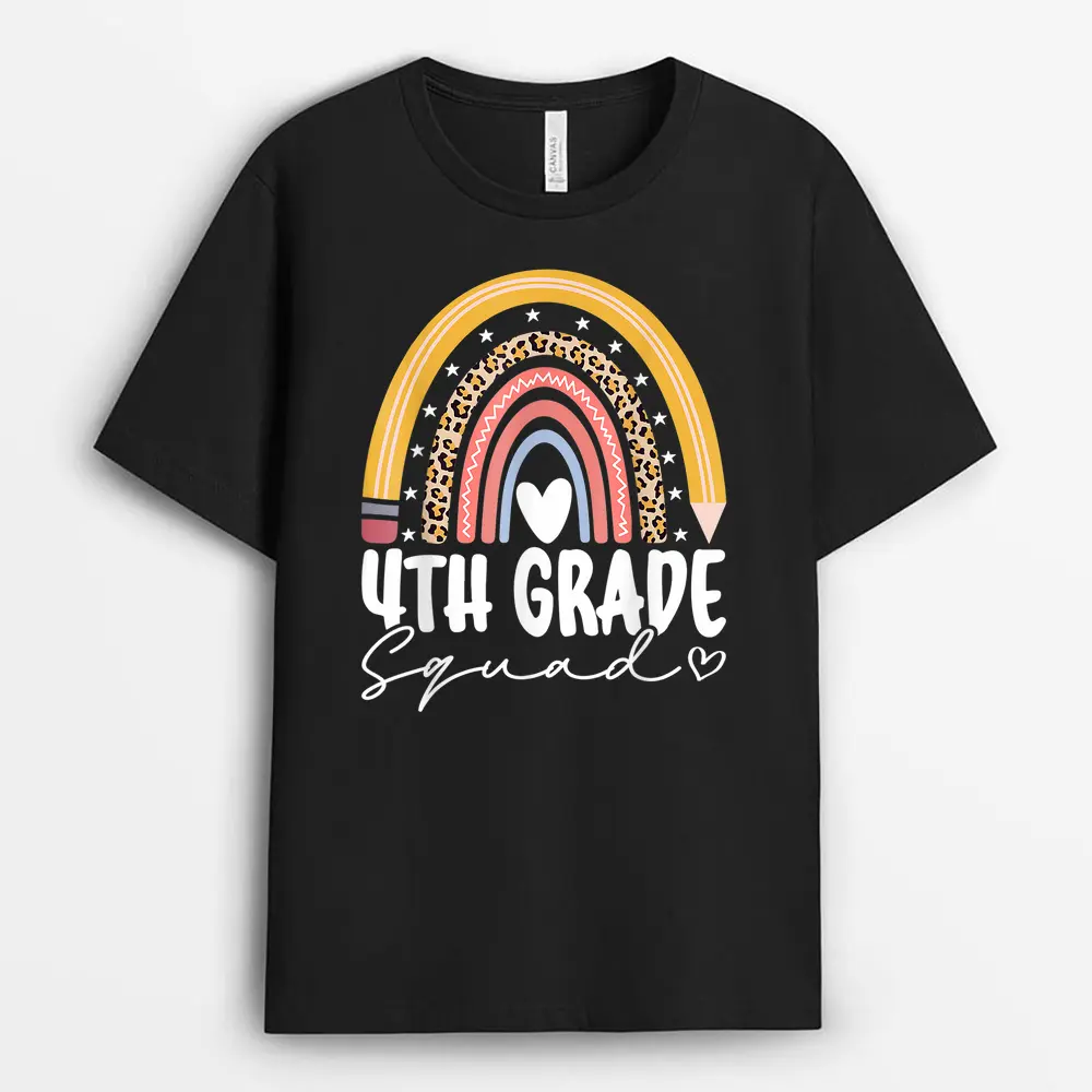 Back To School Rainbow 4th Fourth Grade Squad For Teachers T-Shirt – Black