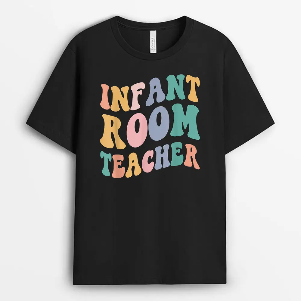 Back To School Teacher Groovy Retro Infant Room Teacher T-Shirt – Black