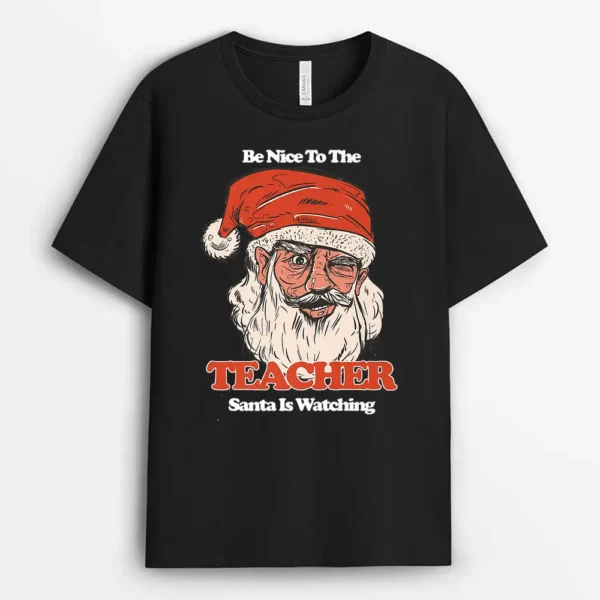 Be Nice To The Teacher Santa Is Watching Christmas Ver 4 T-Shirt – Black