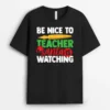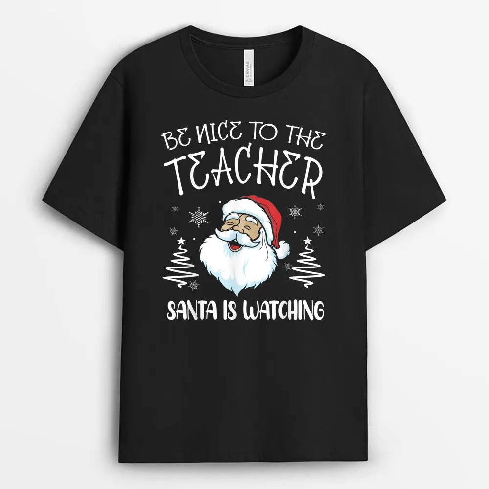 Be Nice To The Teacher Santa Is Watching Teacher Christmas T-Shirt – Black