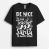 Be Nice To The Teacher Santa Is Watching Teacher Christmas Ver 2 T-Shirt – Black