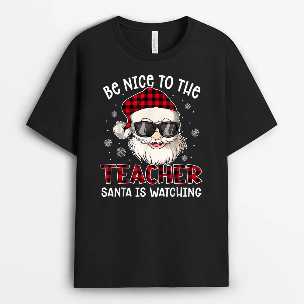 Be Nice To The Teacher Santa Is Watching Ver 3 T-Shirt – Black