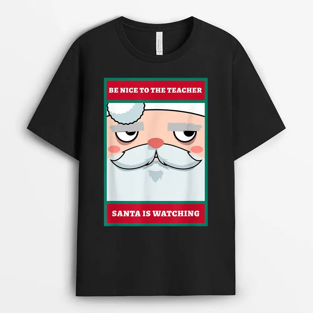 Be Nice To The Teacher Santa Is Watching Ver 5 T-Shirt – Black