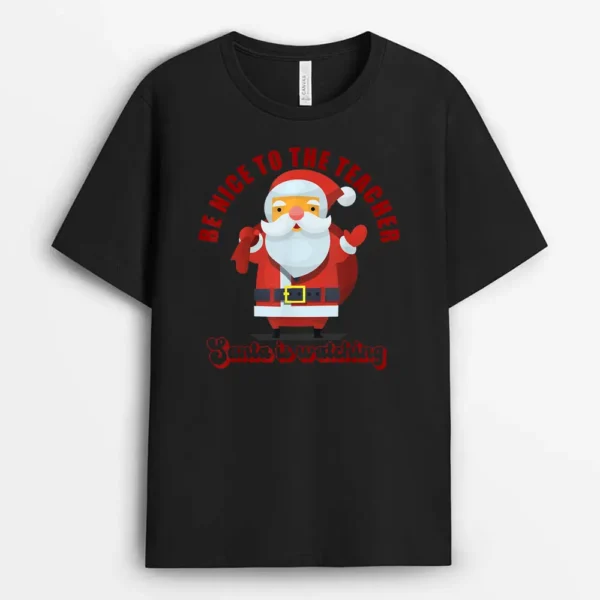Be Nice To The Teacher Santa Is Watching Ver 6 T-Shirt – Black