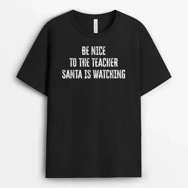 Be Nice To The Teacher Santa Is Watching Ver 9 T-Shirt – Black