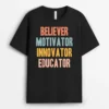 Believer Motivator Innovator Educator Retro Teacher Gifts T-Shirt – Black
