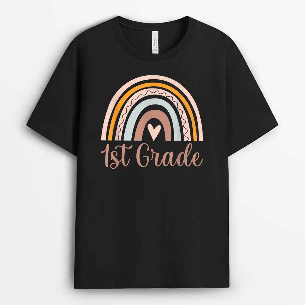 Boho Rainbow 1st Grade Teacher Student Funny Back To School T-Shirt – Black