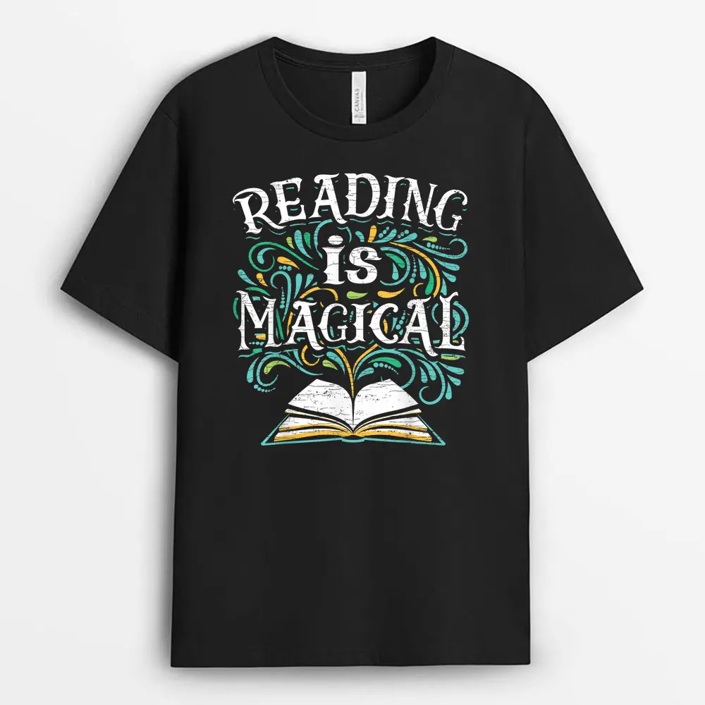 Bookish Bookworm Reading Is Magical Book Lovers Teacher T-Shirt – Black
